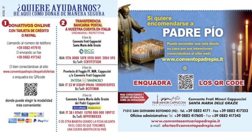 Para informaciones o problemas envíen una e-mail a: ofertas@conventopadrepio.it