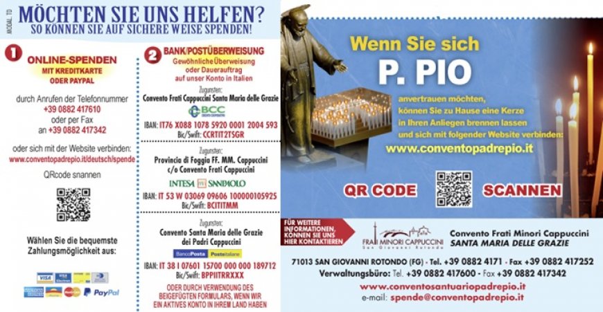 Für weitere Informationen oder bei Problemen, schreiben Sie bitte eine E-Mail an: spende@conventopadrepio.it